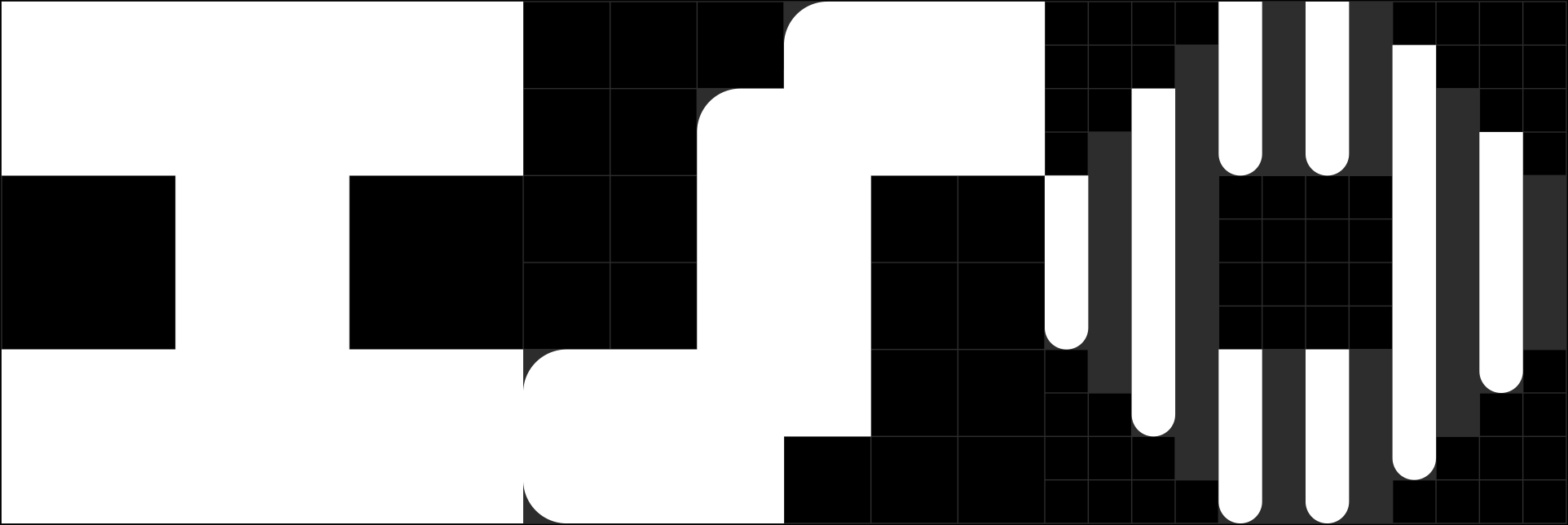 {↑} Inspiration: Grid-based brutalist inspired custom pixel typography. Precise and unforgiving paired with grid-based patterning.